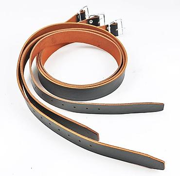 - Материал: натуральная плотная кожа растительного дубления, двухслойная (лицевая сторона — черная, изнанка — натуральный коньячный оттенок).
