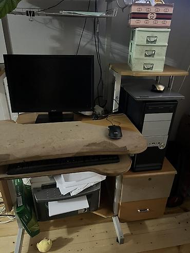 Компьютерный стол , письменный стол со встроенным верхним шкафом и стеллажом. Размеры: ширина-110 высота-190 Функциональный рабочий центр для дома или офиса. Прямоугольная столешница с глубокой...