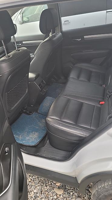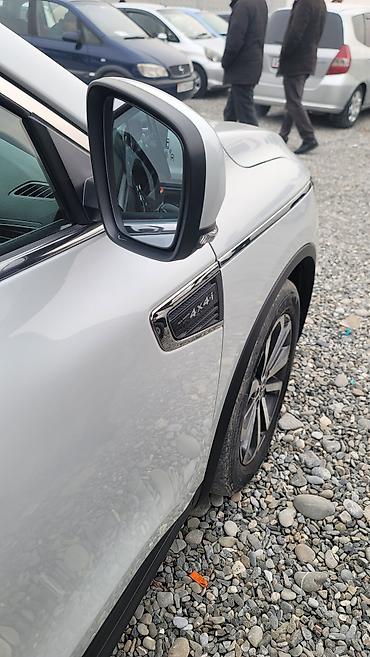 Белый кроссовер SsangYong QM6. Автомобиль оснащен стильными легкосплавными дисками и рейлингами на крыше, что подчеркивает его практичность и современный дизайн. Передняя часть автомобиля выделяется характерной решеткой радиатора с хромированными элементами и интегрированными светодиодными дневными ходовыми огнями. Задние фонари имеют оригинальный дизайн, объединенный световой полосой. Модель QM6 обеспечивает комфортное вождение и подходит как для городской езды, так и для поездок за город.