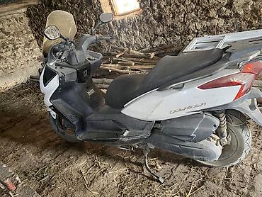 Макси-скутер с высоким ветровым стеклом и двухместным сиденьем. +996