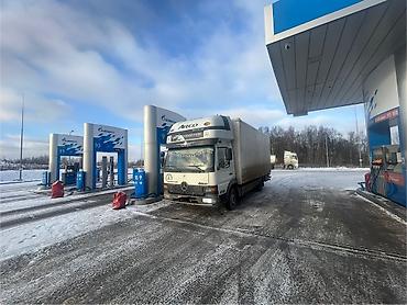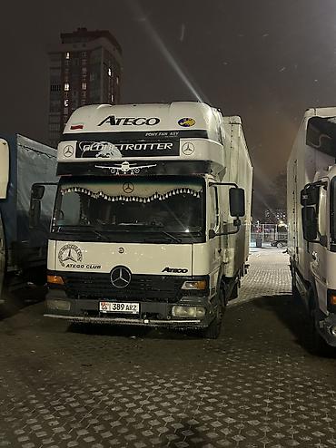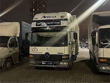 Грузовик Mercedes-Benz Atego, тентованная/фургонная будка. Основные характеристики по фото: - Кабина: дневная, с обтекателем на крыше для снижения расхода топлива. - Кузов: изотермический/фургон б...