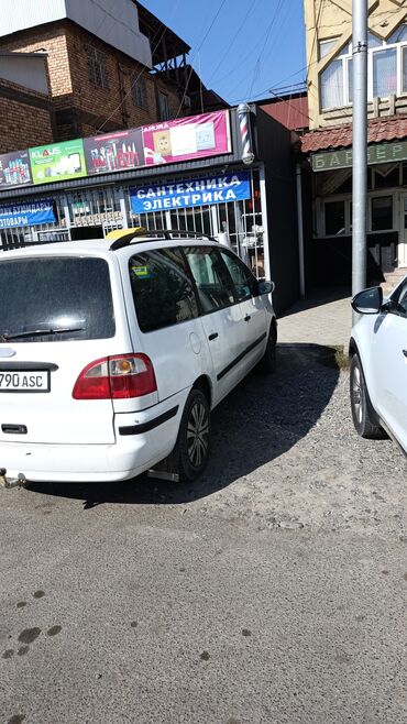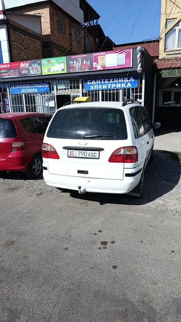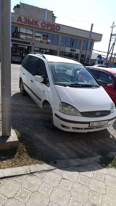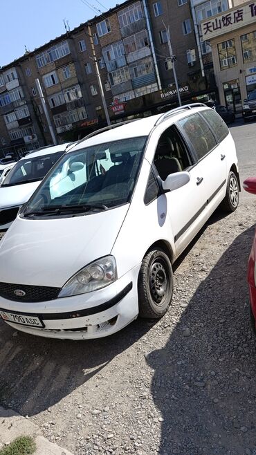 Подойдёт для семьи, поездок с большим багажом, коммерческих задач и развозки пассажиров. Марка и модель на фото: Ford Galaxy; цвет кузова — белый; кузов — минивэн/MPV. Номерные знаки: KG.