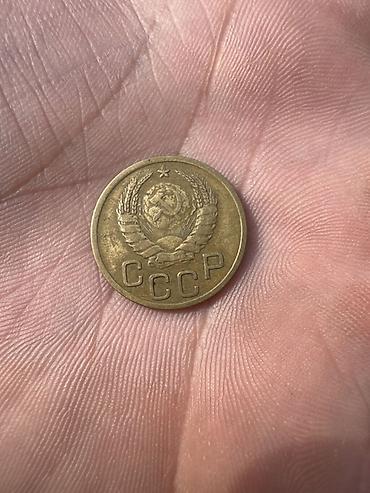 3 копейки СССР, 1950 год - Номинал: 3 копейки - Год выпуска: 1950 - Страна: СССР - Материал: латунь (медно-цинковый сплав) - Диаметр: около 22 мм - Аверс: герб СССР с колосьями и лентами, внизу на...
