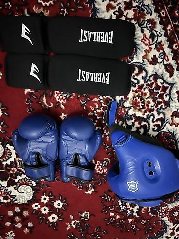 Цвета: синий (перчатки и шлем), черный (защиты Everlast).