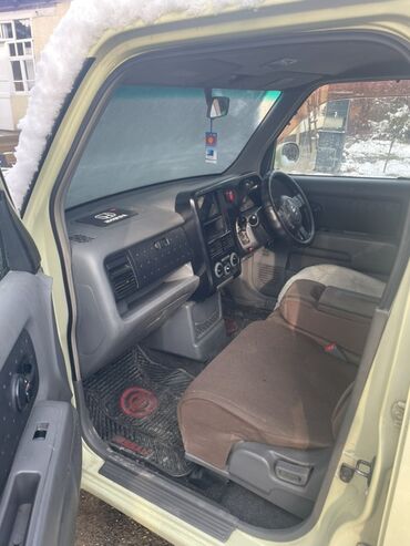 - Кузов: компактный минивэн/хэтчбек, 5 дверей, цвет светло‑кремовый с серебристым передним бампером и крыльями, фирменная квадратная форма. Задняя дверь — распашная боковая, удобный широкий проём.