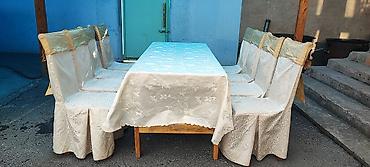 - Стол: длина около 180–200 см, ширина около 80–90 см, высота стандартная обеденная.