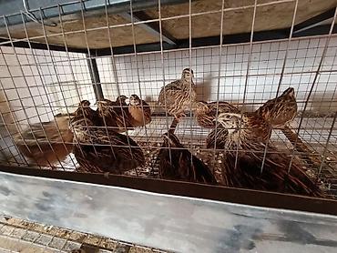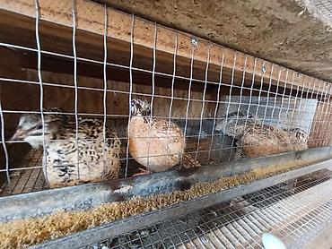 - Корм — стандартные смеси для перепелов (на фото видны кормушки).