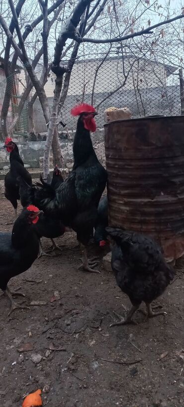 Порода: черные молодки/петушки (высокие, мясо-яичного направления). Описание: - Окрас – полностью черный, яркие красные гребни и серые/желтоватые ноги. - Крупные, высоконогие, плотное телосложение...