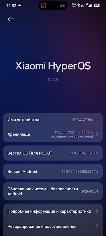 POCO M7 Pro 5G, 512 ГБ Ключевые особенности: - Сотовая связь 5G/4G, две SIM-карты - Память: 512 ГБ встроенной (доступно ~89,7 ГБ занято, см. скрин) - ОС: Xiaomi HyperOS 2.0.208.0 (для POCO), Andro...