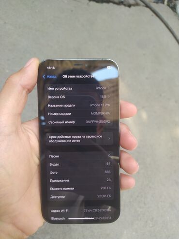 IPhone 12 Pro 🔥 📍Память - 128гб 📍АКБ - 86% 📍Face , True Tone ✅️ 📍Состояние хорошее 👍 💸Цена - 22000 сом 📍Отправляем по всем регионам КР🇰🇬 📍Trade In- Обмен есть 🤝 Для подробной информации ; 📞 (...