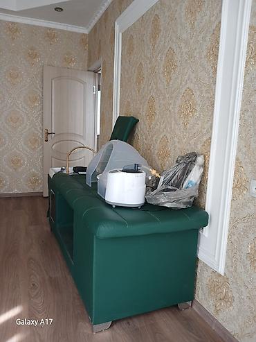- Многофункциональная кушетка с мягкой обивкой из кожзама, цвет – тёмно‑зелёный.