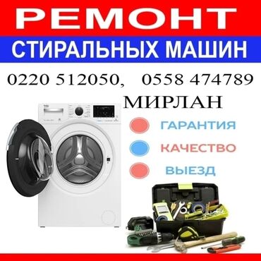 📢 РЕМОНТ СТИРАЛЬНЫХ МАШИН в Бишкеке 🔧 Быстрый выезд мастера на дом! 💥 Любые поломки устраним: • Не сливает или не набирает воду 💧 • Не греет, не отжимает, шумит ⚙️ • Сломан замок, ремень, насос...