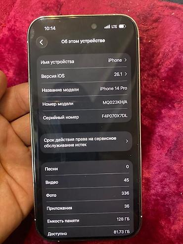 14 про продаю телефон Не глючит не лагает Работает идеально Игры не играл только работа Причина продажи Купил новый телефон Цена 39000 сом АКБ 77