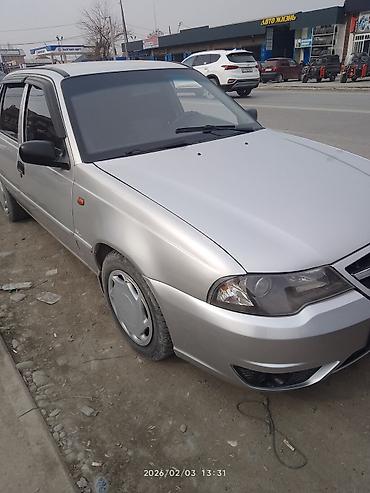 Daewoo Nexia седан, серебристый цвет, на киргизских номерах (KG, регион 03). - Кузов: 4-дверный седан, тонированные задние стекла, легкосплавные диски спереди, противотуманные фары в бампере. -...