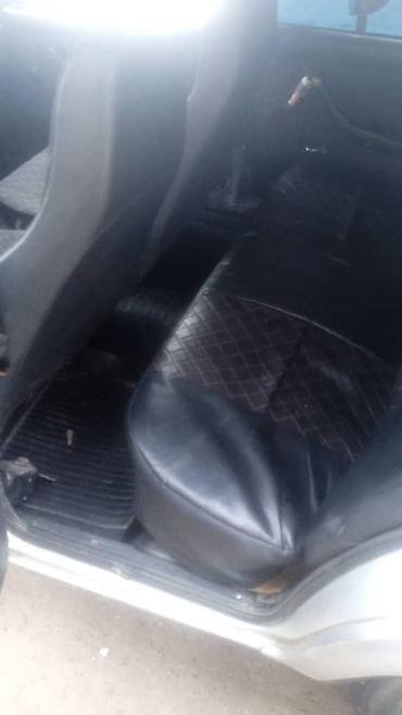 Кузов: серебристый, 4 двери, металлические штампованные диски, хромированные молдинги вокруг стекол, тонировка задних стекол. На переднем левом крыле видна вмятина, передний бампер черный.