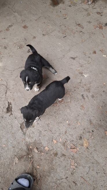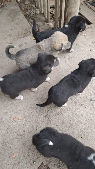 - Окрас: преимущественно чёрный с белыми отметинами на лапах/груди, есть один серо-палевый щенок.