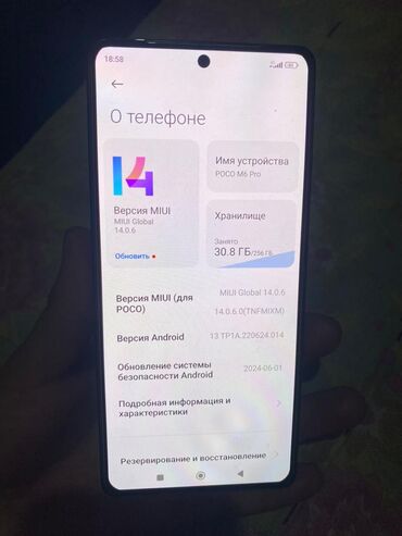 POCO M6 Pro — смартфон с большим AMOLED‑экраном и мощной начинкой, в комплекте фирменная коробка и быстрая зарядка 67 Вт. Основные характеристики: - Модель: POCO M6 Pro (на экране «О телефоне») - ...