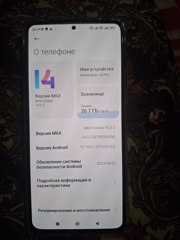 Смартфон Redmi Note 10 Pro, глобальная версия MIUI 14.0.2 (Android 13). Объем памяти: 128 ГБ (занято 26.7 ГБ).