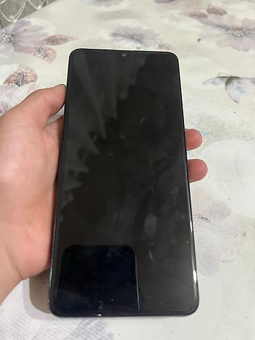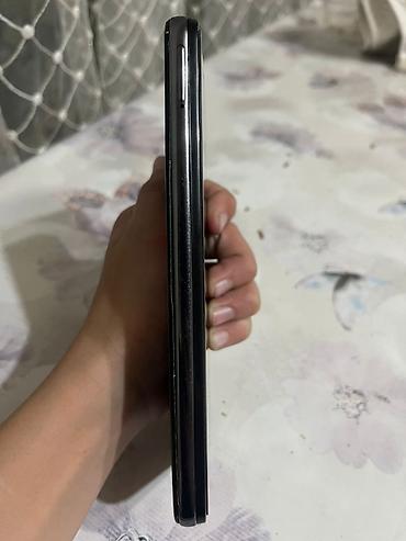 Смартфон с большим безрамочным экраном и каплевидным вырезом под фронтальную камеру. Корпус темный, с плоскими гранями.