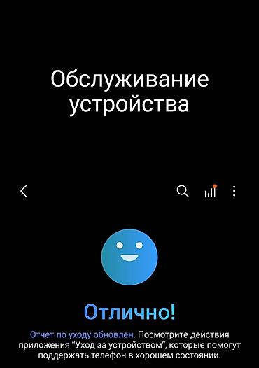 - One UI на базе Android; в приложении «Уход за устройством» статус — «Отлично»