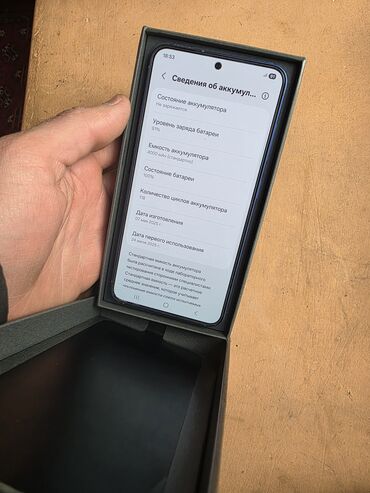 - Батарея: стандартная емкость 4000 мА·ч. В меню «Сведения об аккумуляторе» отображается состояние батареи 100%, количество циклов — 118, Дата изготовления аккумулятора — 07.03.2025, дата первого использования — 24.03.2025.
