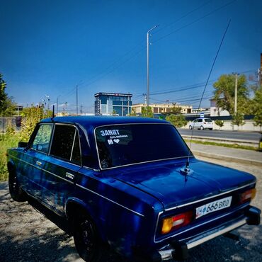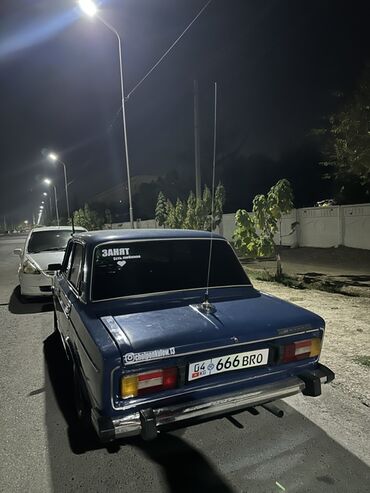 Автомобиль ВАЗ 2106 (классический седан), синие кузовные панели, кузов 4-дверный. Регистрационные знаки KG: 666 BRO (регион G4). Задние бамперы хромированные с черными резиновыми накладками, прямоточный выхлоп с одной трубой, антенна на крыле багажника. Задние фонари стандартные «классика» с разделёнными секциями, отражатели целые. Черные штампованные диски, шины дорожного типа. Оклейки/наклейки: на правой части крышки багажника — «Жигули», на заднем стекле — надпись «ЗАНЯТ есть любимая», по левому крылу — ник в Instagram. Тонированные стекла. В салоне — заднее стекло с наклейками.