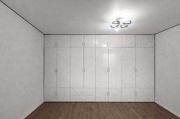 - Экономит пространство: от стены до стены, от пола до потолка; единая линия фасадов создает аккуратный вид комнаты.