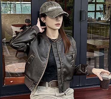 - Классический крой бомбера: прямой силуэт, укороченная длина, посадка по фигуре.