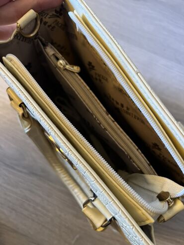 - Фурнитура: металлическая в золотистом цвете, декоративный монограммный логотип на фронте, карабины и пряжки в тон.