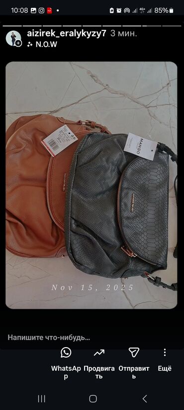 - Модель 2: кросс-боди/сумка через плечо, две расцветки — коричневая зернистая и темно‑серая с тиснением под рептилию. Изгибающаяся передняя молния по дуге, фирменный логотип Mango Touch на лицевой стороне, длинный регулируемый ремень, легкая и компактная.