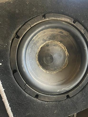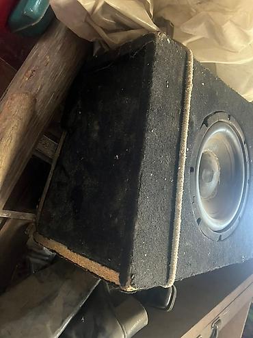 Сабвуфер в корпусе для автомобиля. - Форм-фактор: пассивный сабвуфер в закрытом акустическом ящике, обтянутом карпетом. - Динамик: низкочастотный динамик приблизительно 12" (по внешнему виду корзи...