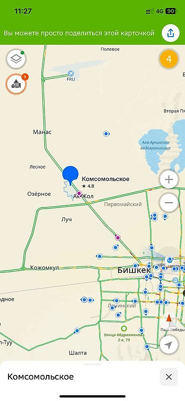 - Локация: недалеко новый Ошский рынок, автовокзал; удобный выезд на трассу в сторону Бишкека и аэропорта Манас