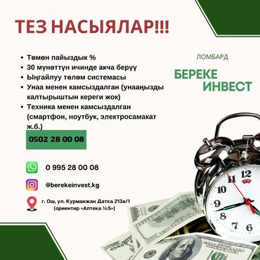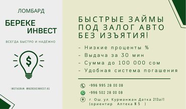 Автоломбард Инвест - Бишкек ломбард Срочно нужны деньги? Деньги под залог авто за 30 минут!!! "Автоломбард Инвест" поможет: мы готовы предложить вам займ под залог автомобиля на очень выгодных дл...