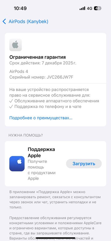 AirPods 4 Гарантия на товар ✅ Доставка по всему Кыргызстану 🇰🇬 AirPods Производство Вьетнам 🇻🇳 Хватает до 6 часов 🔋 Анимация , все будет работать ✅ В комплекте кабель, документация. Качество о...