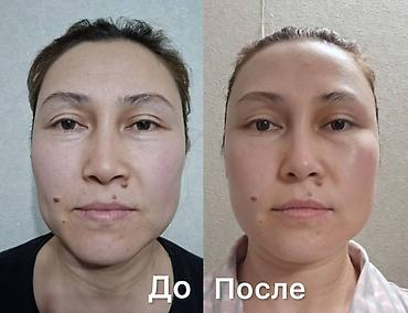 Безоперационная косметологическая процедура для омоложения лица. На фото представлены результаты «до/после» после курса, направленного на: