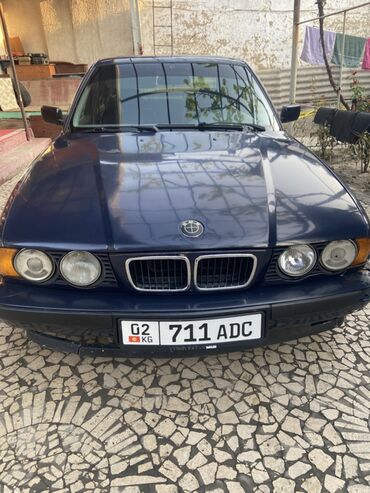 BMW 5 Series E34 520i, седан, темно-синий цвет.