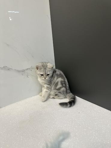Скотиш Фолд (Шотландская вислоухая), 1 месяц, Мальчик, Серебристая шиншилла, Приучена к лотку