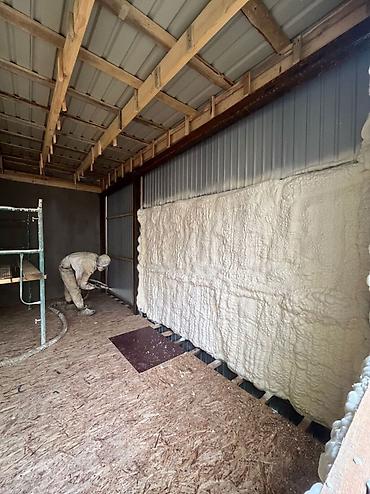 - Профессиональное нанесение ППУ методом напыления на стены, потолки, перекрытия, кровлю, ангары, склады, гаражи, каркасные и металлические конструкции.