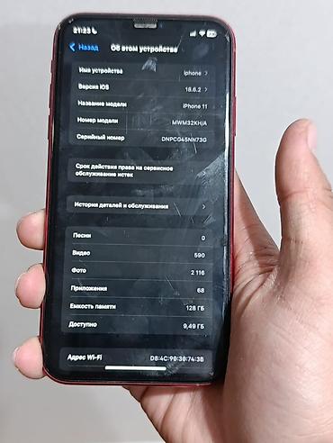 IPhone 11, Б/у, 128 ГБ, Черный, Кабель, 100 %