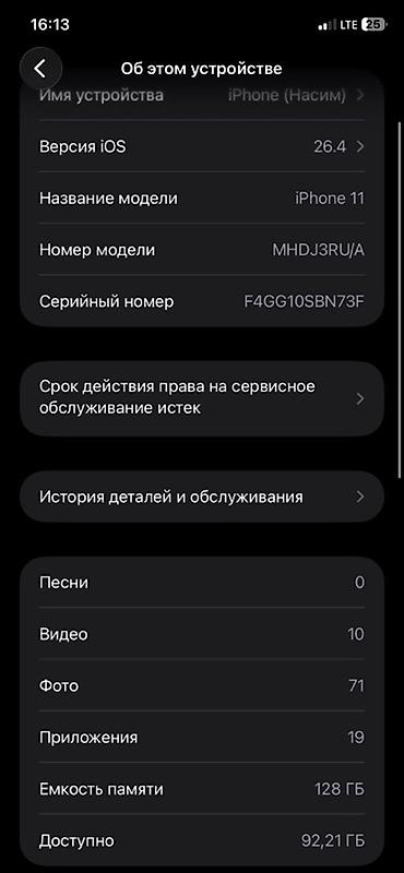 - Аккумулятор: в «Состоянии аккумулятора и зарядка» показано сообщение о невозможности проверить подлинность; максимальная емкость указана 100%, пиковая производительность — «Определить состояние не удается».