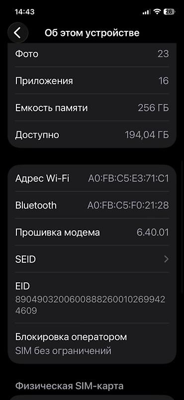 - Память: 256 ГБ, свободно ~194 ГБ