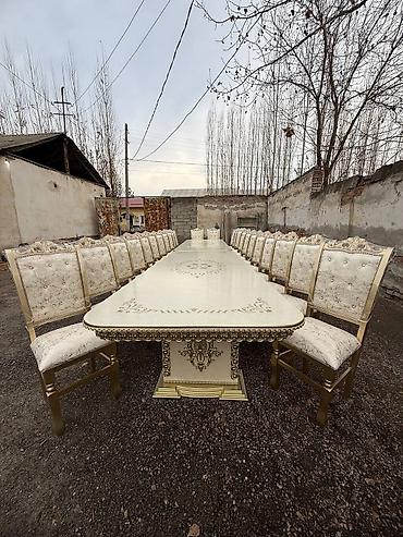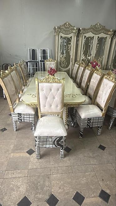 Обеденный гарнитур в классическом стиле, стол+ (10) стульев цена 25000тыс мини торг уместен. Адрес посёлок Манас (в сторону аэропорта)