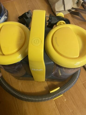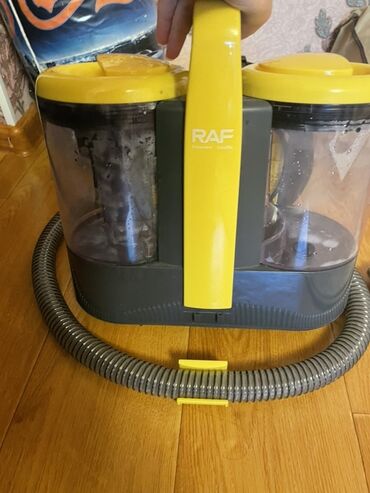 Идеален для точечной чистки пятен, освежения диванов, матрасов, кресел, ковровых дорожек и автомобильных сидений. Компактный корпус облегчает хранение и переноску. Цвет: желтый/серый. Бренд: RAF (надпись на корпусе).