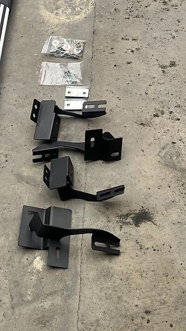 - Комплектация: 2 порога, комплект кронштейнов крепления, металлические пластины, крепёж (болты, гайки, шайбы, саморезы) — всё для установки