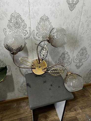 - Плафоны: шарообразные матовые стеклянные с рельефным узором, декоративные накладки под «античное золото».