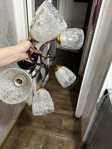 Комплектация по фото: основание, рожки, декоративные элементы, стеклянные плафоны.