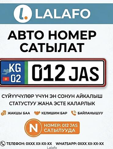 Продаётся красивый автомобильный госномер формата KG 02 с комбинацией 012 JAS.
