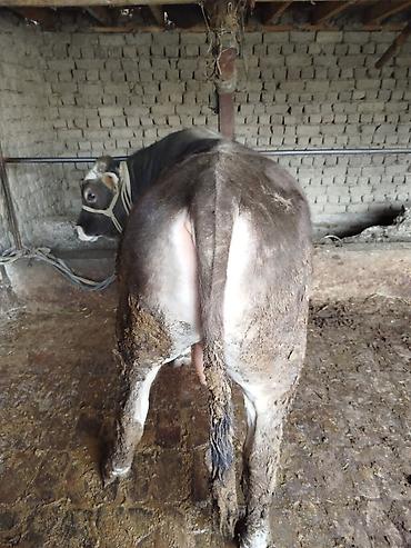 Бык мясного направления. - Окрас: темно‑серый с белой головой. - Рога сформированные, бирки на ушах. - Крупный, широкая грудь и зад, выраженная мускулатура. - Содержится в стойле, приучен к привяз...