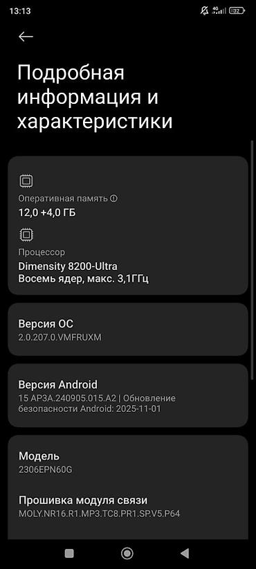 - Android 15 (сборка AP3A.240905.015.A2), патч безопасности 2025-11-01