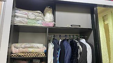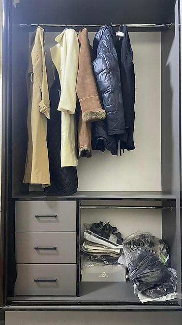- Вместительное наполнение: две секции с штангами для вешалок, верхние полки для белья и коробок, нижние ниши.